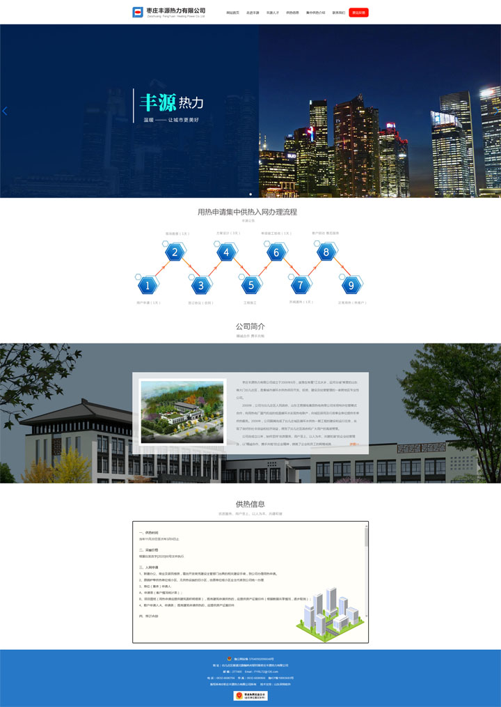 棗莊豐源熱力有限公司成立于2008年8月,座落在有著“江北水鄉(xiāng),運(yùn)河古城”美譽(yù)的山東南大門臺(tái)兒莊區(qū),是集城市循環(huán)水供熱項(xiàng)目開發(fā)、投資、建設(shè)及經(jīng)營(yíng)管理的一家跨地區(qū)專業(yè)性公司。 2008年,公司與臺(tái)兒莊區(qū)人民政府、山東王晁煤電集團(tuán)熱電有限公司采用特許經(jīng)營(yíng)模式合作,利用熱電廠凝汽機(jī)組的低溫循環(huán)水實(shí)現(xiàn)熱電聯(lián)產(chǎn),向城區(qū)居民及行政事業(yè)單位提供冬季供熱服務(wù)。2008年,公司圓滿完成了臺(tái)兒莊城區(qū)循環(huán)水供熱一期工程的建設(shè)和運(yùn)行任務(wù),實(shí)現(xiàn)了良好的社會(huì)效益和經(jīng)濟(jì)效益,得到了臺(tái)兒莊區(qū)政府和廣大用戶的高度贊譽(yù)。