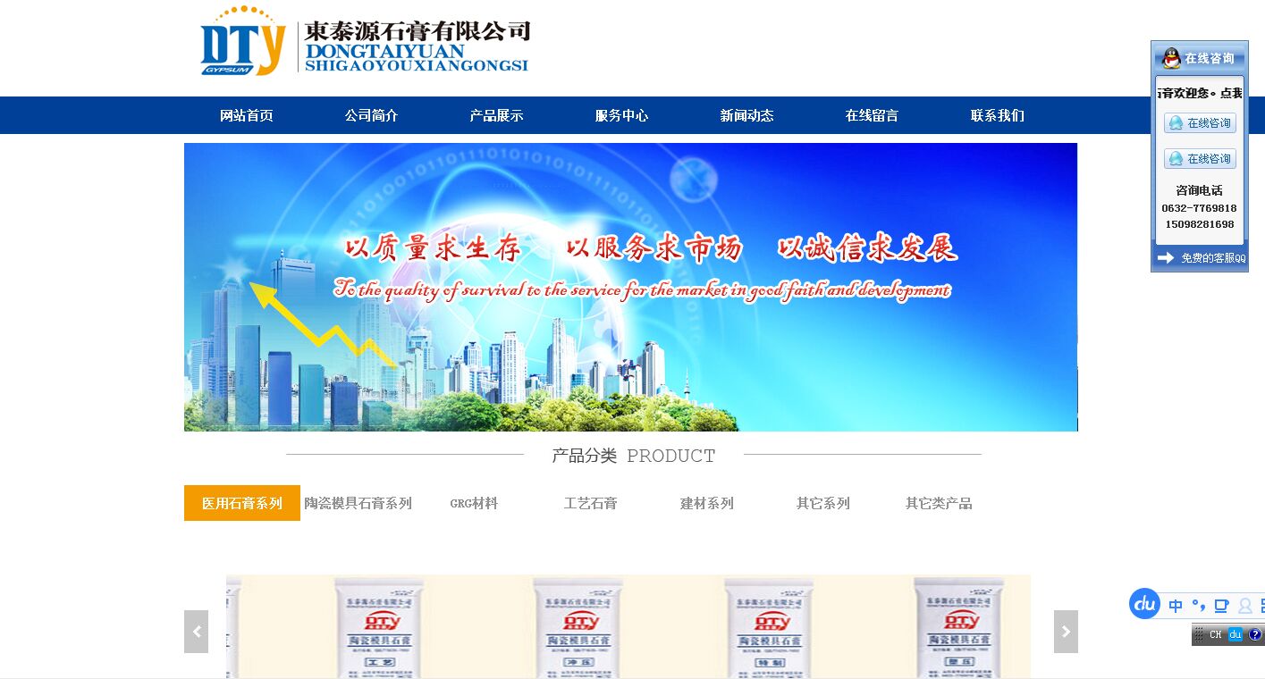 公司以科技為先導、市場需求為目標、優(yōu)質服務為宗旨,采用先進的生產技術、完善的檢測手段、規(guī)范的管理、優(yōu)越的產品性能,為客戶提供優(yōu)質的產品及好的售后服務。本廠生產的陶瓷模具用原模石膏粉及沖壓石膏粉系列,具有高強度、高透氣、低膨脹、快吸水,易操作、超長壽命等特性已贏得了陶瓷業(yè)的一致認可。現在作為石膏粉的高端產品:牙科用超硬石膏也已投入市場,以其超強的硬度、超低膨脹及良好的和易性更獲得了口腔專業(yè)醫(yī)院的青睞。目前公司新開發(fā)的GRG新材料,已遠遠超過了國家規(guī)定的各項標準,是星級酒店、會展中心、大型劇院、體育場館等大型工程必選材料,是一款綠色環(huán)保的新型產品,在業(yè)界已受到了廣泛贊譽,同時也穩(wěn)穩(wěn)地占據了國內大部分的高端市場,同時GRG產品也出口到了日本、韓國及中東等地。 隨著公司在市場上的不斷開拓,為了抓住時機,滿足客戶的需要,提高公司的經營規(guī)模和競爭能力,又投資600萬元新建兩條GRG產品深加工生產線;公司秉乘著“誠信立足,創(chuàng)新致遠”的企業(yè)理念,全體同仁眾志成誠,將再次揚帆啟航,再鑄輝煌! |