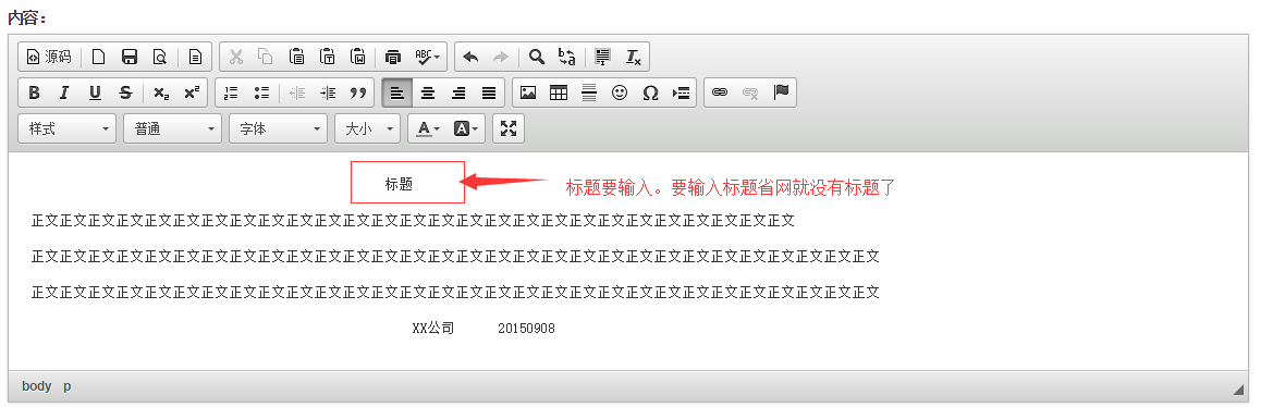 5、      輸入正文  標(biāo)題要輸入(如果不輸入標(biāo)題省網(wǎng)就沒有標(biāo)題了。)